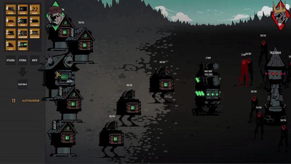 Избы сами сражаются, майнят златокоины и защищают базу.